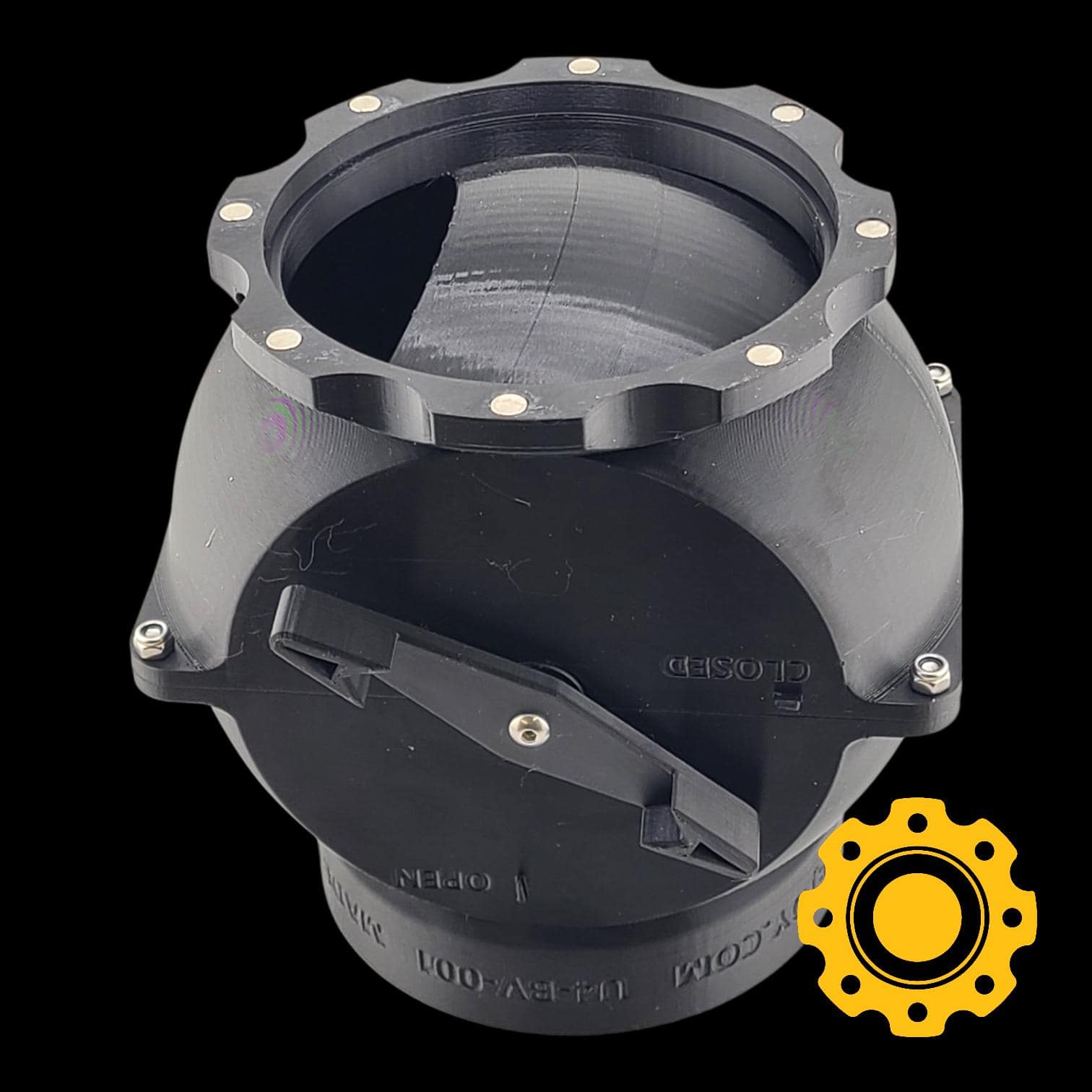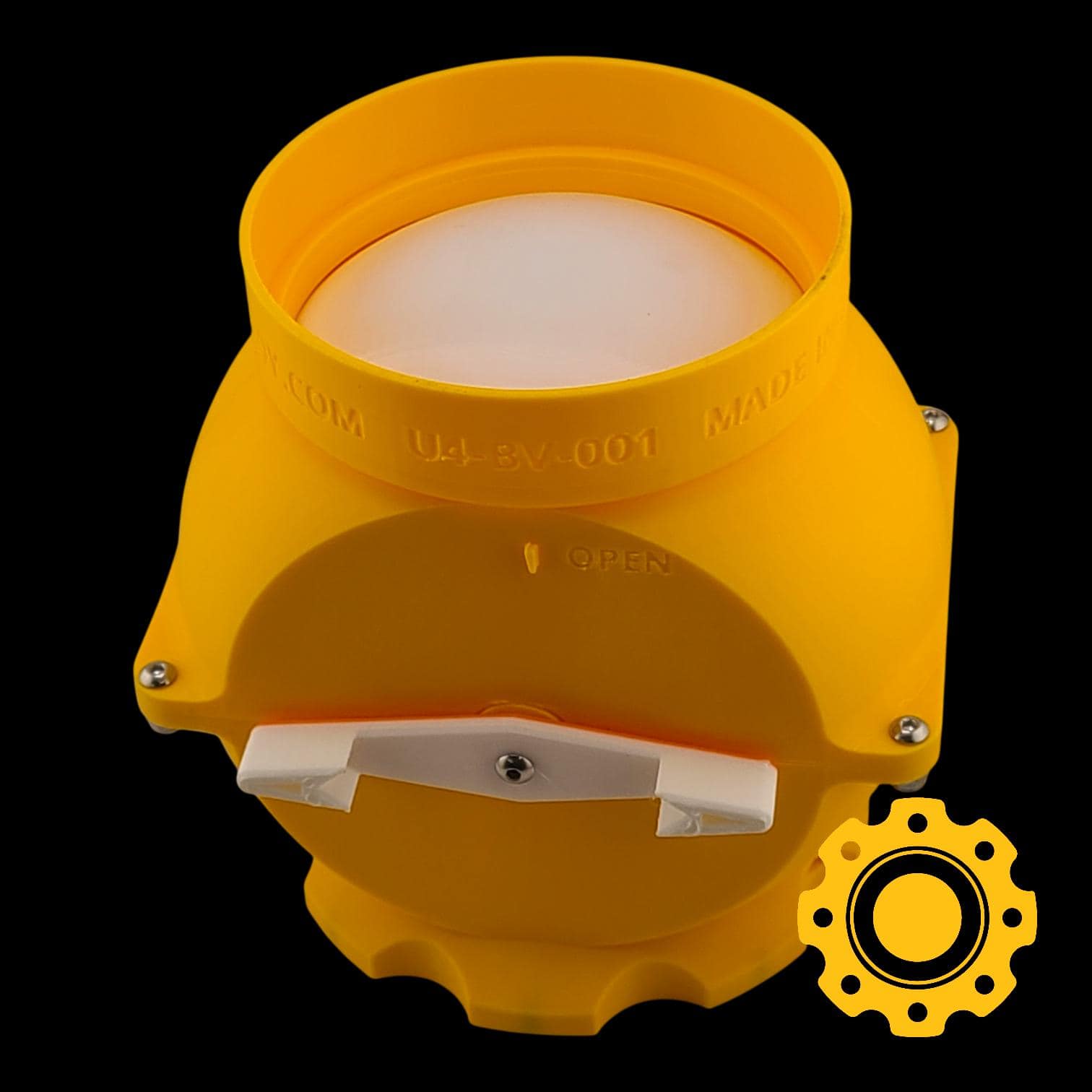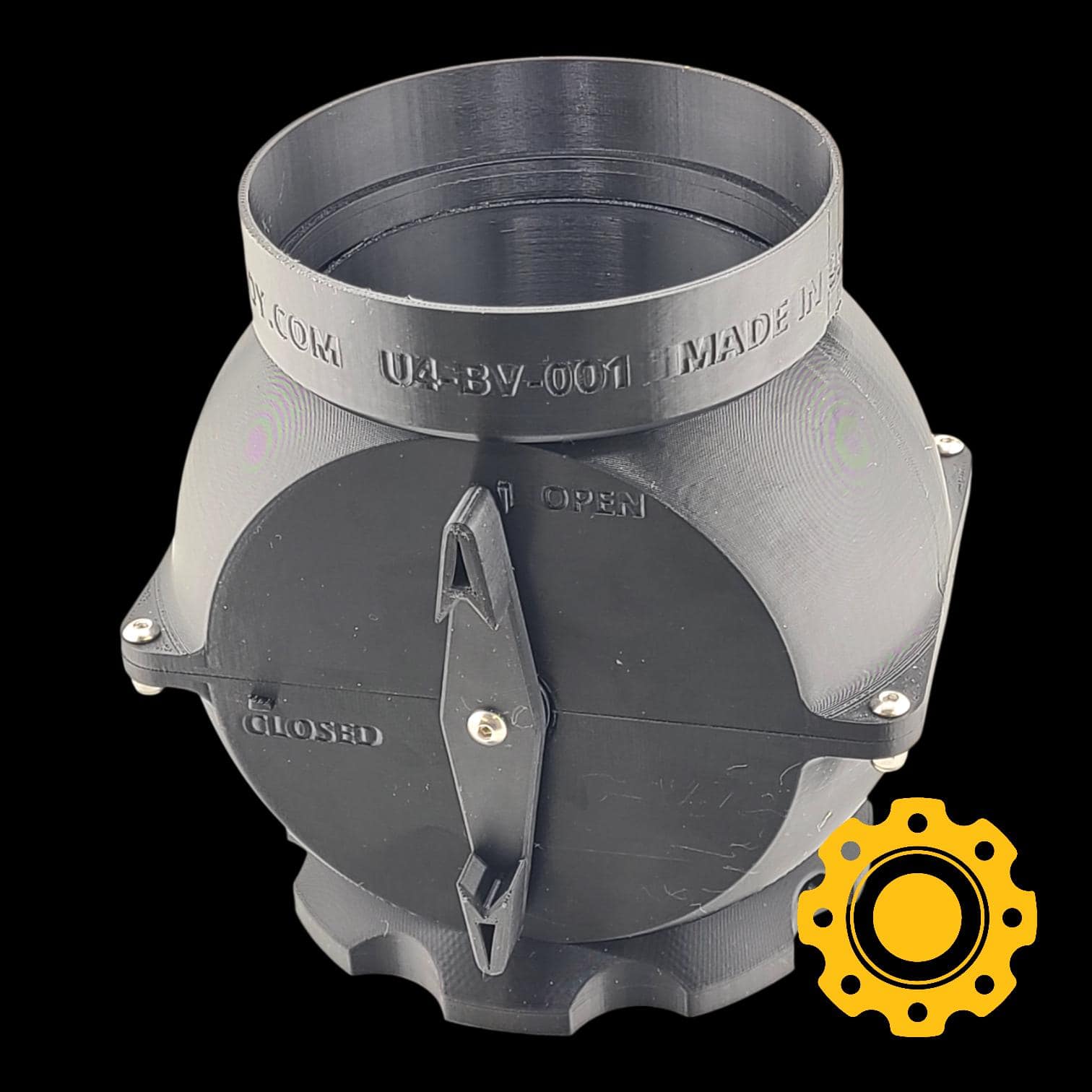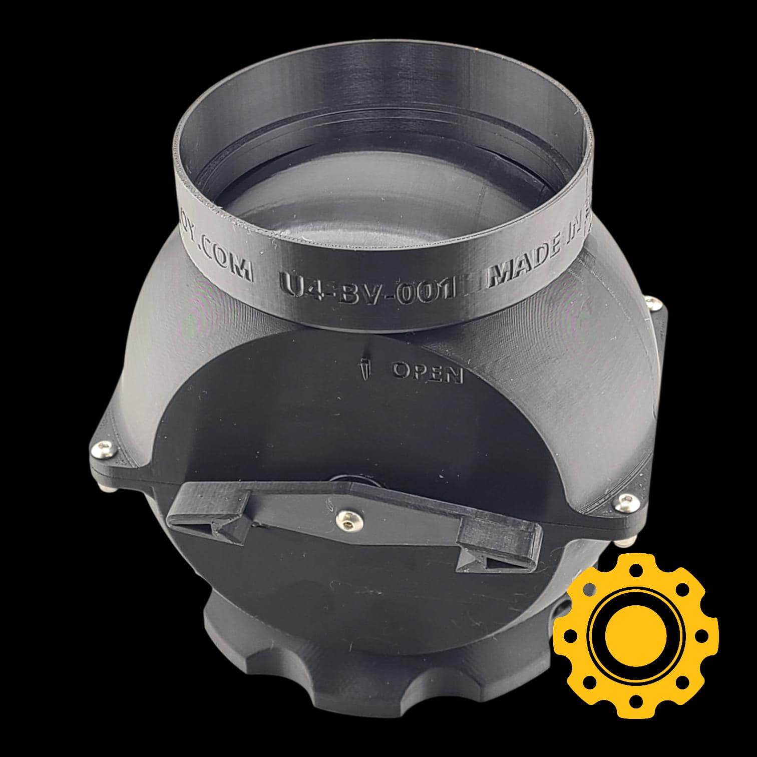 This ball valve blast gate doesn’t restrict air at all, never clogs, and shuts airtight. One end is designed to fit over standard 4″ PVC pipe, and the other end has a female magnetic connector that accepts our U4 series magnetic hose connectors and size-down adapters. *Note that these ball valves are designed to work with our flex hose adapters, sold separately. If you would like one that connects to PVC pipe on both ends, just message us! We also offer these in the U2 size that will connect to 2″ and 2.5″ PVC and our 2.5″ magnetic hose adapters.*