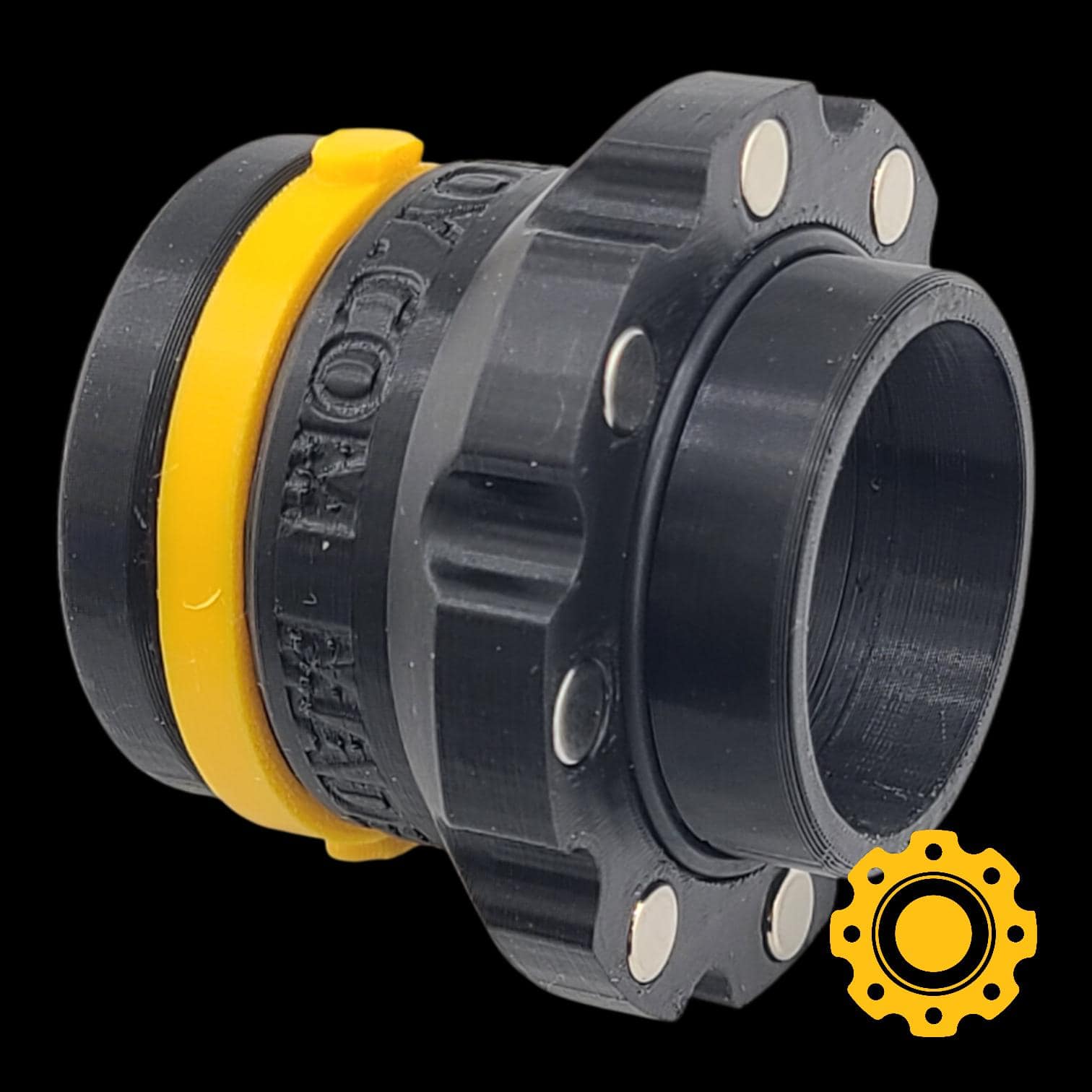 This magnetic adapter for Fein and Cen-Tec Quick Click tool connectors is the quickest way to make those connectors compatible with the HoseJoy system. The CenTec Quick Click system is one of the best legacy solutions out there, but if you have it, you know that it can be a struggle to depress both of the little buttons in order to release the tool connectors, especially if you have weak or arthritic hands (despite the marketing, there’s really nothing quick or easy about the Fein/Cen-Tec Quick Click detachment method). This piece is the quickest way to convert to our superior magnetic connector system, and it requires no modification of your existing quick Click tool connectors — just click it in and you’re ready to connect to any of our magnetic hose connectors. *Note that these adapters are designed to work with our hose adapters, vacuum port adapters, and blast gates, sold separately.*