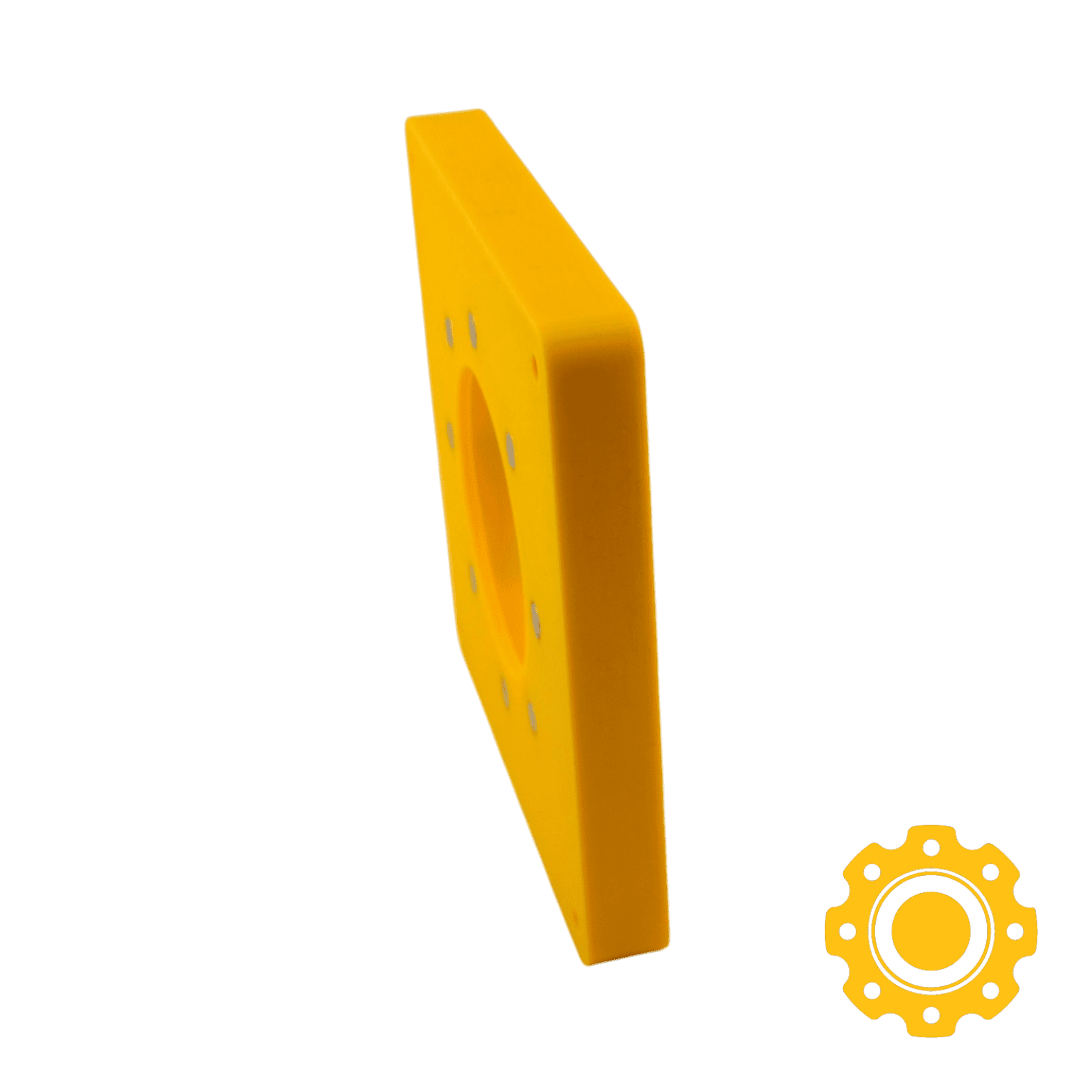 The corners are designed for a 1/2″ template bit (6.35mm/1/2″ radius). The plate is 15mm thick, and the mounting holes are designed for #8 pan head screws (pocket hole screws) to sit below the top surface (3mm/1/8″ recess). Use the plate to mark the four mounting holes, draw an X between them to locate the center, drill a 4″ hole in the center with a hole saw, then use a router to remove the rest. Installs the same way as a router lift insert.