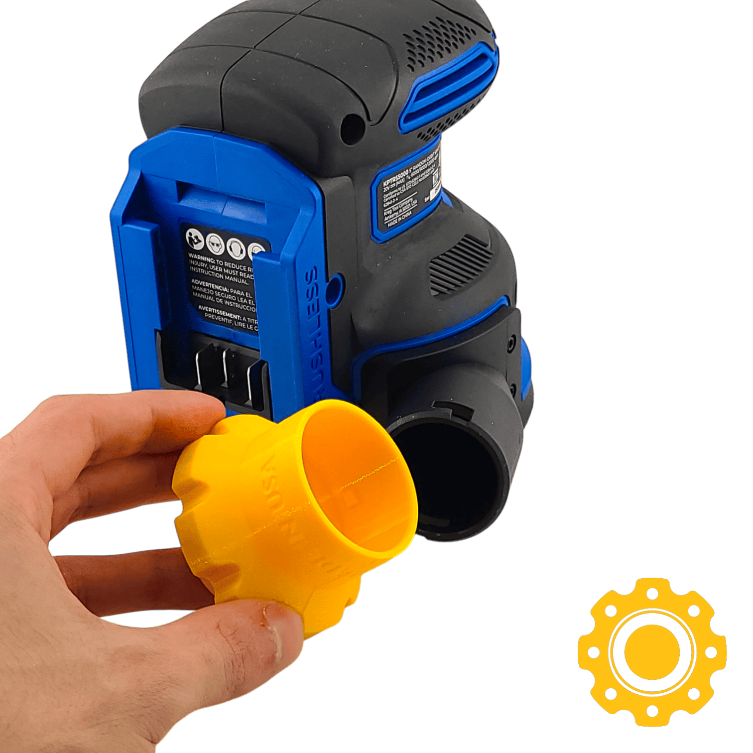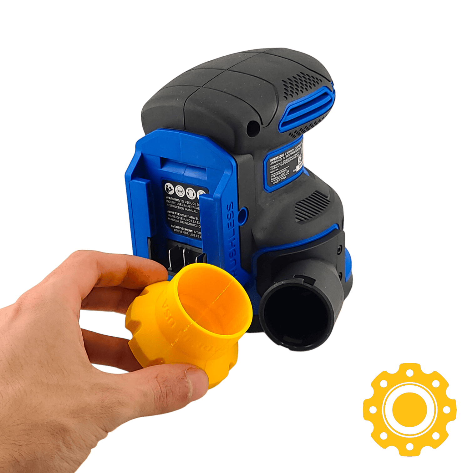 This magnetic adapter connects to the twist lock dust port on the Kreg Ionic Drive Sander #KPTRS5000 and will connect directly to any of our U1 series hose end adapters.