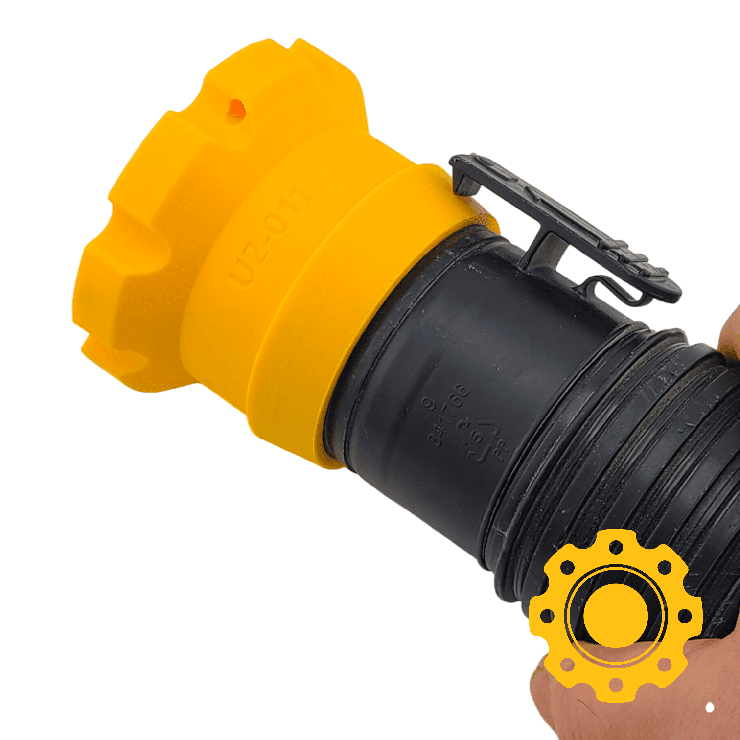 Push the hose into the adapter until the hook clips onto the flange and locks into place, then connect magnetically to other HoseJoy components.