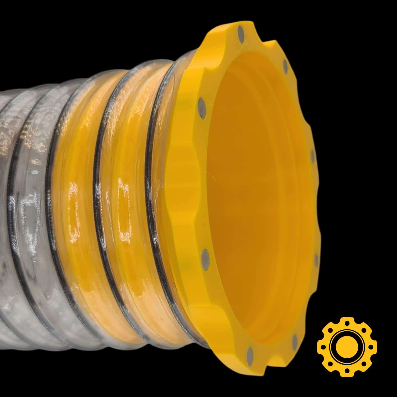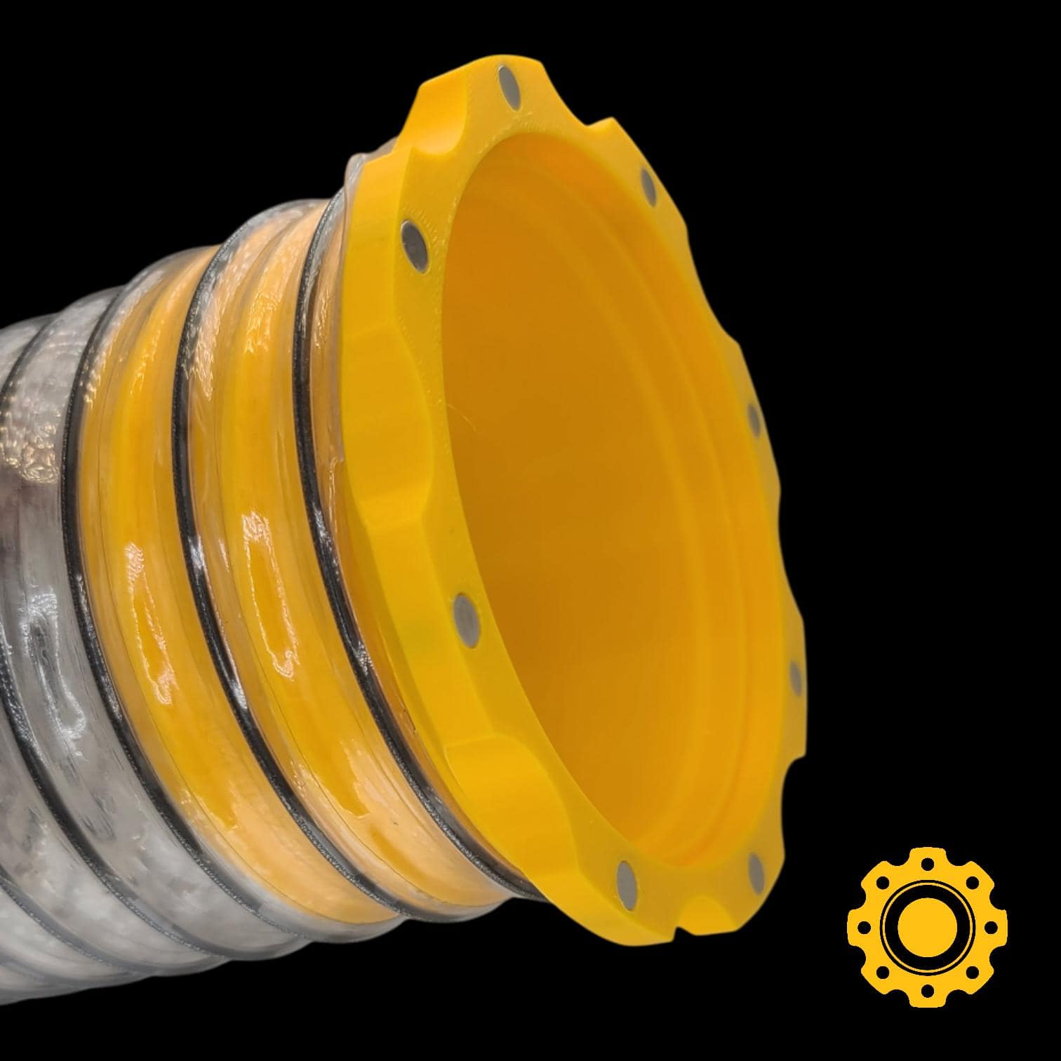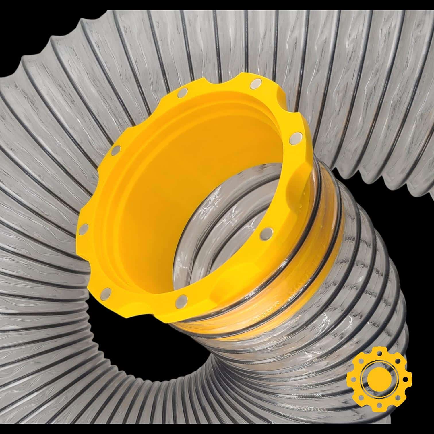 This magnetic 4 inch flex hose adapter is part of the HoseJoy magnetic hose connector system, providing a fast, frustration-free way to connect 4″ flex hose to tools without clamps, tabs, or hard-to-press fittings.