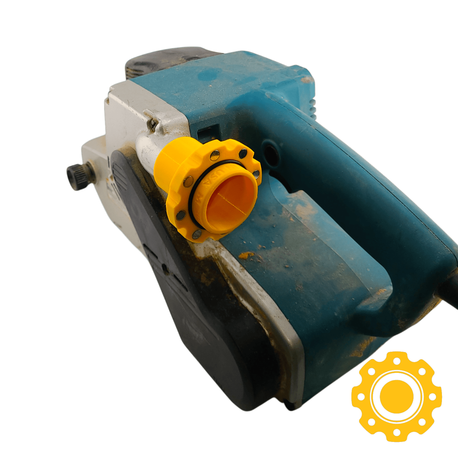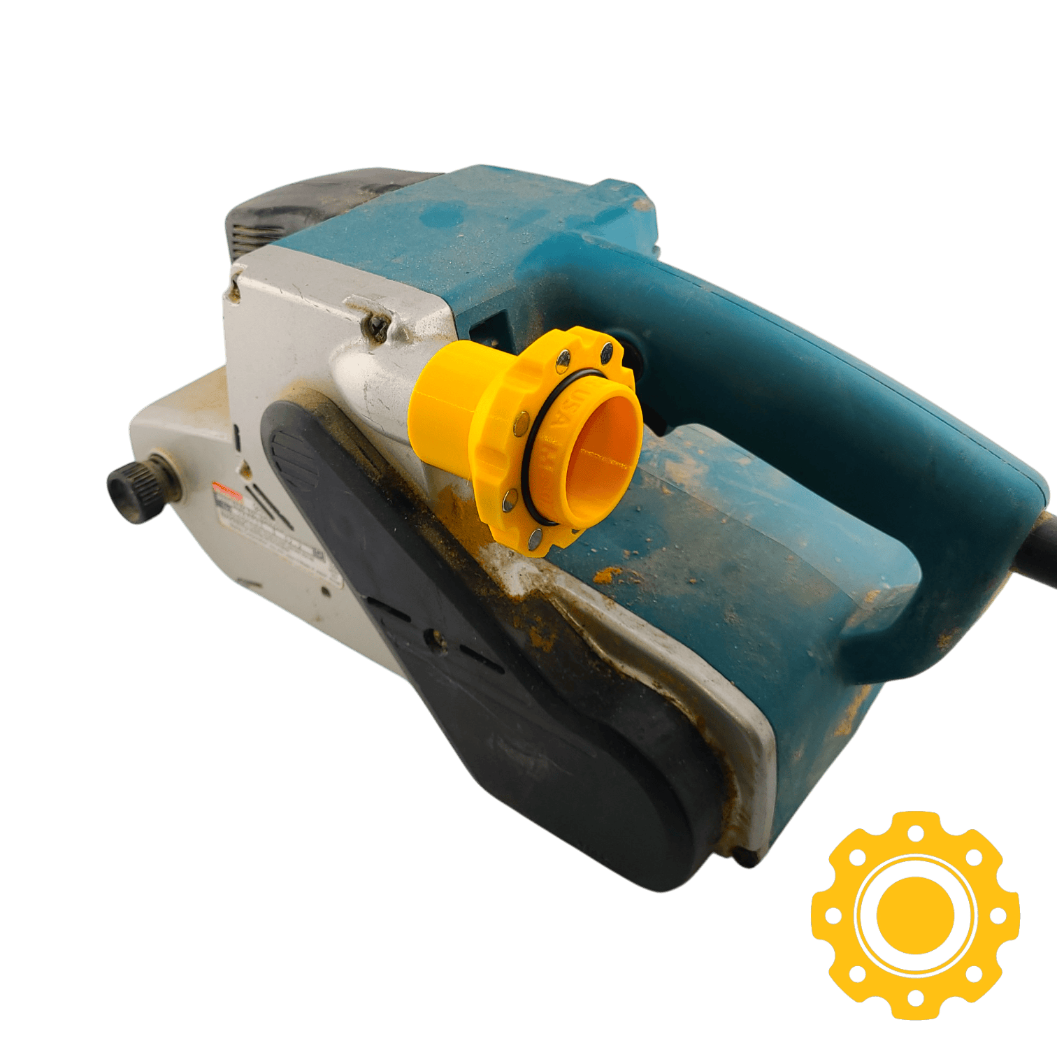 This magnetic adapter will convert the dust port on your Makita belt sander to the HoseJoy system.